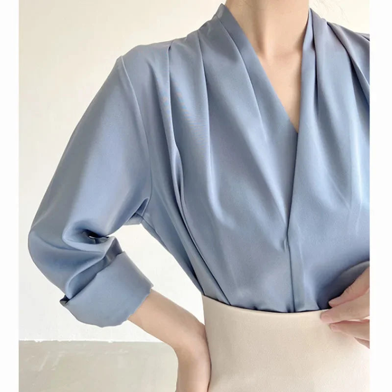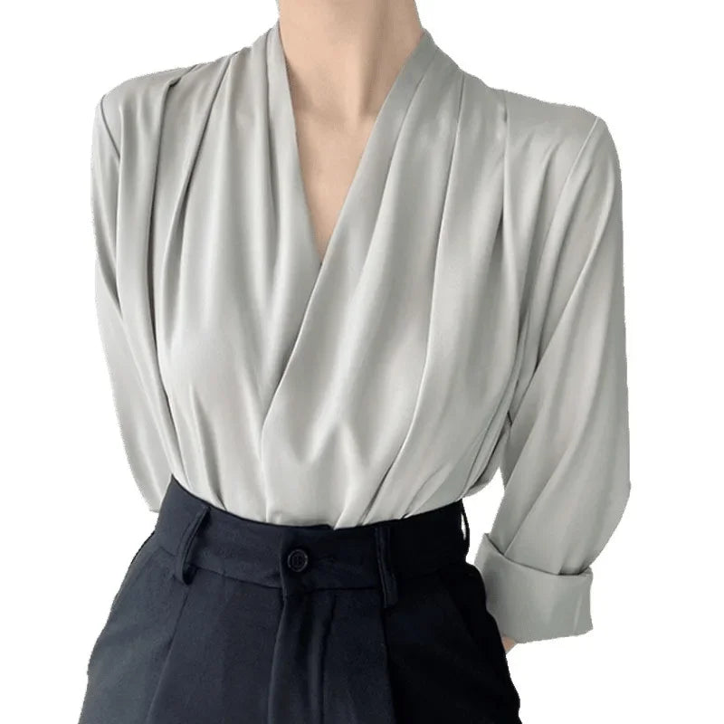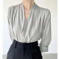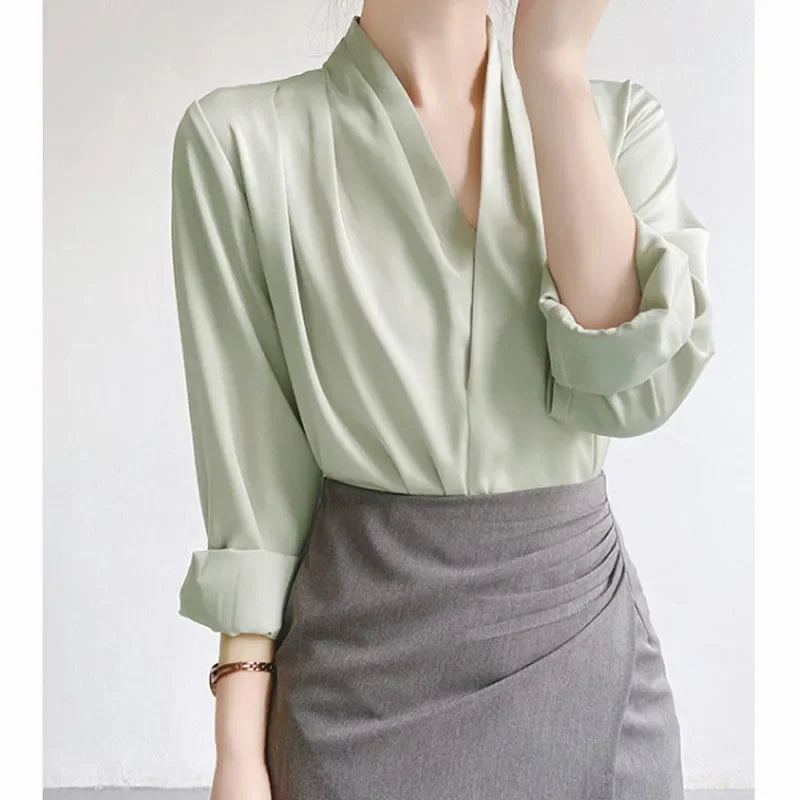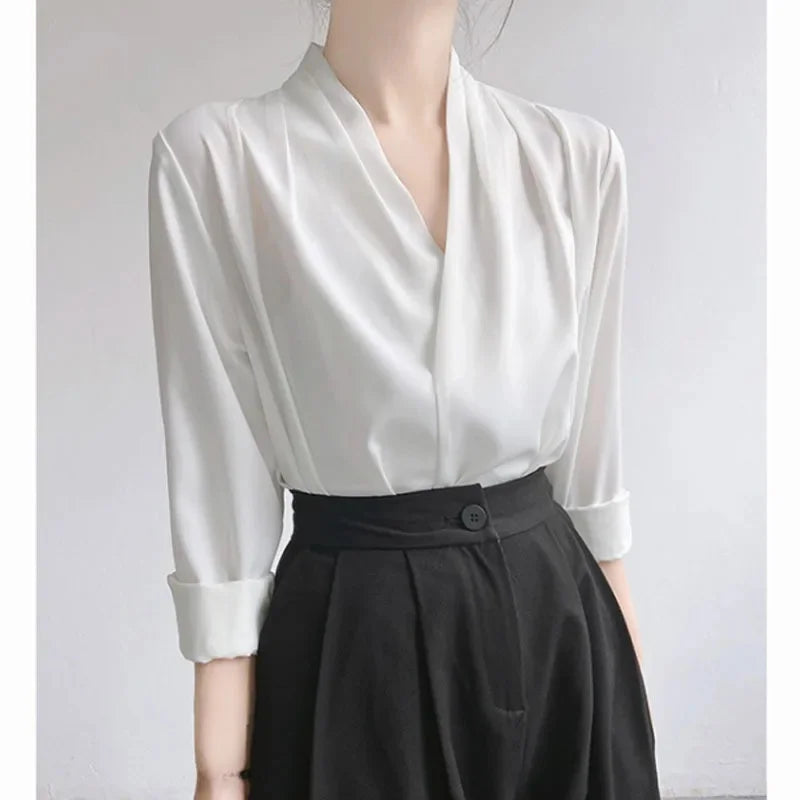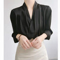 Elegant Satin Women's Shirt V-Neck Design Summer Business Top Small Audience Professional Upper Apparel Female Fashion