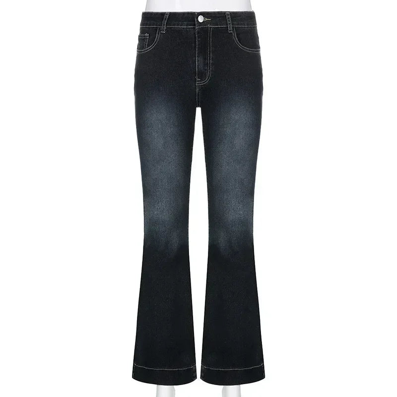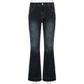 Kalevest Y2K High Street Low Rise Jeans Blue Women Pants Bootcut Pockets Jeans Streetwear Low Waist Jeans Wide Leg Pants